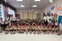 В канун празднования 80-летия Дня Победы в нашем детском саду прошел смотр строя и песни. Его целью является формирование у подрастающего поколения активной гражданской позиции через соблюдение воинских ритуалов и военных традиций.