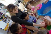 Балалар бакчасында студентларны балалар бик котеп алалар. Студентлар балалар белэн хезмэт эшлэре, уеннар, кызыклы энгэмэлэр уткэрэлэр. Барлык баланы да бу эштэ катнаштырырга тырышалар .