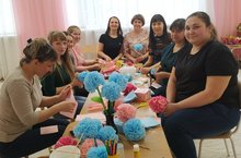 В преддверии Международного женского дня 8 марта воспитатели средней группы2 Гаффарова А.А. и Зайнакова Г.И. провели для родителей мастер-класс по изготовлению цветов из салфеток. Получились очень красивые, нежные цветы. Они украшали музыкальный зал на утреннике.