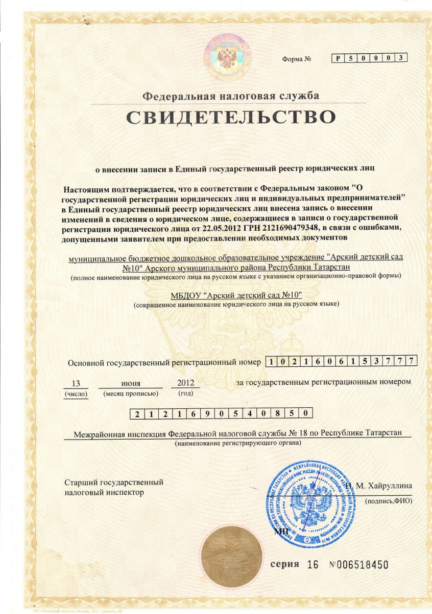 | Короткое название: | МБДОУ "Арский детский сад №10" Арского муниципального района РТ |