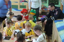 В подготовительной группе (воспитатель Ганиева Р.З.) прошло открытое мероприятие по изучению правил дорожного движения с участием начальника Арского филиала "Дирекция финансирования программ БДД РТ" и инспектора ДПС ОГИБДД ОМВД России по РТ. Воспитанники достойно ответили на все вопросы знатоков, а так же ответили на вопросы инспектора ДПС Сабирова А. Х.