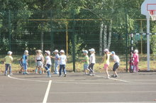 В рамках недели здоровья дети средней группы совместно с воспитателем Медниковой Г. З., музыкальным руководителем Абдуллиной Ю. И., младшим воспитателем Зиатдиновой З. Ш. ходили на стадион Арского педагогического колледжа имени Г. Тукая и провели там развлечение "Если хочешь быть здоров, спортом занимайся.