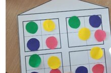 Закрепляли знания формы и цвета предметов.Чем темнее, тем виднее огоньки.