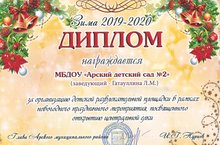 На центральном стадионе г. Арск состоялось торжественное закрытие главной елки Арского муниципального района. На мероприятии торжественно наградили образовательные организации за активное участие учреждений в новогоднем оформлении территории организации, участии коллективов в проведении районных праздничных мероприятий и т.д. Наш детский сад был награжден Дипломом Главы Арского муниципального района И. Г. Нуриева за организацию детской развлекательной площадки, в рамках новогоднего праздничного мероприятия, посвященного открытию центральной елки.