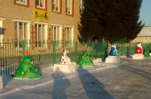 Скоро Новый год, а это значит пора украшать территорию детского сада снежными фигурами. Сегодня началась работа по оформлению территории дошкольного образовательного учреждения фигурами из снега. Окна детского сада украшены яркой подсветкой, новогодними гирляндами.