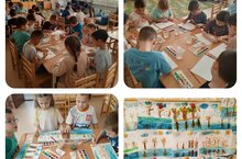 Бүген без балалар белән Татар орнаменты элементларын язылган кисәкләр белән ясауны дәвам иттек һәм декоратив фигуралар белән симметрияле һәм асимитрик композицияләр төзедек, элементларны сайлауда, аларның төсләрен һәм композицион төзелешен хәл итүдә балаларның мөстәкыйльлеген үстердек.