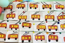 Ребята старшей группы выполнили интересную аппликацию на тему "Троллейбус". Дети научились передавать характерные особенности формы троллейбуса. Закрепили умение разрезать полоску на одинаковые прямоугольники - окна, вырезать колеса из квадратов.