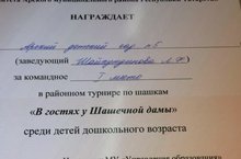 Сегодня воспитанники подготовительной к школе группы приняли активное участие в районном конкурсе "В гостях у Шашечный дамы" среди детей дошкольного возраста и были награждены дипломом первой степени. Поздравляем победителей.
