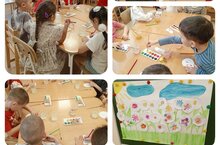 Сегодня ребята старшей группы рисовали панно"Красивые цветы" с элементами аппликации. Развивали эстетическое восприятие, формировали стремление преобразовывать окружающую среду, внесли в неё элементы красоты, продолжили закреплять навыки коллективный работы.Бүген өлкән төркем балалары аппликация элементлары белән"матур чәчәкләр" панносын ясадылар. Эстетик кабул итүне үстерделәр, әйләнә-тирә мохитне үзгәртеп кору омтылышын формалаштырдылар, аңа матурлык элементларын керттеләр, коллектив эш күнекмәләрен ныгытуны дәвам иттеләр.