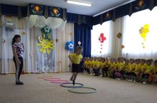 Ну-ка, обруч покатаем,Он – от нас, а мы – за ним,Поспеваем, подгоняем,Только падать не дадим!