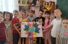 Толерантлык тәрбияләү максатыннан мәктәпкә әзерлек төркемендә тәрбияләнүче балалар "Без халыклар дуслыгы өчен" исемле күмәк эш иҗат иттеләр. Эш барышында Җирдә бар кеше дус яшәргә тиеш дигән нәтиҗәгә килделәр.