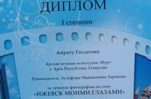 Поздравляем Гиззатова Айрата ученика 9 А класса - дипломанта I степени X открытого Республиканского кинофестиваля - конкурса за лучшую фотографию на тему "Ижевск моими глазами".