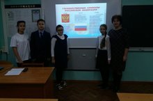 Сегодня 12 декабря активисты Молодой Гвардии, ученики 9-ых классов провели классный час посвящённый Дню конституции Российской Федерации.