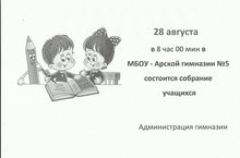 Педагогический коллектив МБОУ-Арской гимназии №5 в лице директора Хакимуллина Ф.Х. поздравляет всех с началом нового учебного года. Желает всем творческих успехов, неиссякаемой энергии, новых побед. С праздником!