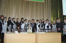 Бәйрәм уңаеннан уздырылган укучылар линейкасында ир - егетләребез кызларны котлап теләкләр теләде, җыр - бию катнашында күтәренке рухта концерт номерлары башкардылар.