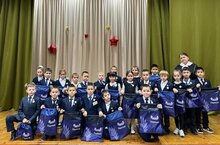 Активисты Движения Первых вручили ребятам значки Орлят России и Барсика.