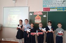 Дәрес вакытында сугыш чоры җырлары яңгырады, шигырьләр сөйләделәр, шулай ук укучылар «патриотлык» һәм «патриот» төшенчәләре белән таныштылар. "Сугыш балалары" видеоролигын караганнан соң, укучылар Бөек Ватан сугышы этаплары, совет солдатларының батырлыгы һәм каһарманлыгы, герой-балалар, коточкыч сугыш елларында бөтен халыкның бердәмлеге һәм фидакарьлеге турында белделәр. Сыйныф сәгате азагында балалар һәлак булганнарны бер минутлык тынлык белән искә алдылар һәм «Голубь мира» сувенирларын башкардылар.