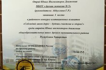 Отряд Юных Инспекторов Движения " Перспективные ребята" руководитель отряда Абдуллина Г.Р. занял первое место в районном конкурсе агитационных плакатов "Соблюдай закон дорог- будешь счастлив и здоров!" среди отрядов Юных инспекторов движения общеобразовательных школ Арского муниципального района Республики Татарстан. Молодцы!