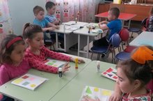 Кечкенәләр төркемендә кисеп ябыштыру шөгыле 05.04.2018 Балаларны шакмакның почмакларын җайлап кына түгәрәкләү ысулы белән түгәрәк кисәргә, шул түгәрәккә чәчәк ясап ябыштырырга өйрәтү. Балаларның күзаллауларын үстерү, матурлыкны күрә белергә өйрәтү.