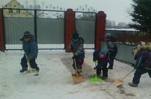 Эш эшләгәч тәмле була, аш та, чәй дә табында. 18.02.2016 Әтиләребез ясап биргән көрәк белән әй рәхәт тә соң уйнавы! Менә ничек дусларча "эшлибез" без. Хезмәт тәрбиясе бирер өчен кар көрәү бик файдалы.