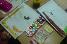 Матур әдәбият белән танышу шөгылендә "Төлке белән Карга" әкиятен укыдык. Ә аннары бергәләшеп мультфильмын карадык. Үз күзләребез белән күргән мультфильм геройларын рәсем итеп ясадык. Балалар краска белән буяуны бик яраталар, чиста һәм пөхтә эшләргә тырышалар.