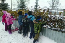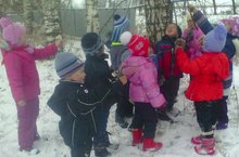 Мәктәпкә әзерлек төркеме балалары белән саф һавада сезонлы үзгәрешләрне күзәтәбез. Балалар бакчасы территориясендәге агачларның исемнәрен ачыклыйбыз. Танып белү эшчәнлегенә нигезләнеп, агачларның биек, ә куакларның тәбәнәк икәнлекләрен чагыштырабыз. Бу бер яктан сүз байлыгын арттырса, икенче яктан балаларның сөйләм телен үстерүгә дә зур этәргеч ясый, экологик тәрбия бирә.