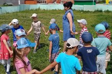 Балалар белэн "Утыр-утыр, Мәликә" уенын уйныйбыз