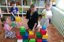 Развивать наглядно-образное мышление, воображение, коммуникативные навыки; воспитывать желание оказывать помощь друг другу, воспитывать интерес к выполнению построек и совместной игре с ними.