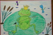 Задачи: развивать творчество, воображение. Учить задумывать содержание своей картины по мотивам русской народной сказки. Формировать эстетическое отношение к окружающему, любовь к природе. Закреплять навыки работы с карандашом (умение делать эскиз), научить рисовать лягушку, строить простейшую композицию с элементами природного пейзажа; умение оформлять изображение в цвете восковыми мелками. Учить передавать в рисунке сказочных героев.