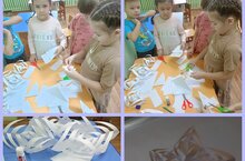 Цель: Создать объемную поделку «Снежинка» из бумаги для украшения группы.