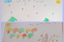 1. Образовательные. Закреплять умение рисовать разнообразные деревья, используя разные цвета для стволов (темно-коричневый, темно-серый, черный, зеленовато-серый) и приемы работы кистью (всех ворсом и концом). Учить располагать изображения по всему листу: выше, ниже, правее, левее.