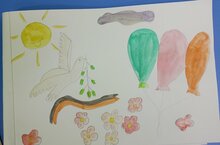 Без бүген рәсем дәресендә балалар белән "Хезмәт көнен"нә багышланган рәсемнәр ясадык.