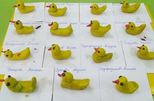 Учить детей лепить предмет, состоящий из нескольких частей, передавая некоторые характерные особенности (вытянутый клюв). Упражнять в использовании приема прищипывания, оттягивания. Закреплять умение соединять части, плотно прижимая их друг к другу.