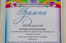 Грамота за 1 место в районном танцевальном конкурсе "Каблучок" 26.05.2022