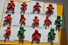 Учить детей лепить маленького человека: голова - шар, руки - палочки. Учить составлять изображение из частей.