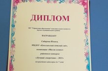 Диплом нашего воспитанника в номинации "Милли хәзинә" районного конкурса "Лучший скворечник 2021" 28.04.2021