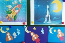 Передать форму ракеты, применяя прием вырезывания из бумаги сложенной вдвое. Развивать чувство композиции, воображение.