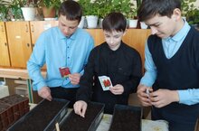 Технология дәресендә укучыларыбыз чәчәк үсентеләре өчен орлыклар чәчтеләр.