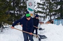 Хәрби-патриотик айлык кысаларында укучылар обелиск янын кардан чистарттылар.
