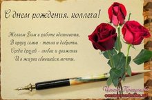 С днем рождения, дорогой коллега! От всего сердца хочется пожелать профессиональных взлетов, удовольствия от работы, терпения и стабильности. Пусть спокойствие и благополучие всегда живут в душе, удача сопутствует во всех начинаниях, а дома всегда ждут уют и забота близких!