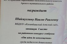 Котлыйбыз! 20.04.2022 Тәрбиячебез Шаймуллина Наилә Раил кызы районкүләм лэпбук бәйгесендә катнашып 1 урынга лаек булды. Афәрин! Котлыйбыз!