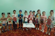 “Татарстанда яшәүче милләтләр” сөйләм теле үстерүдән интегральләштерелгән шөгыль . 14.02.2022 Бурычлар: 1. балаларның халык, милләт турында белемнәрен системалаштыру; 2. Татарстан Республикасының күпмилләтле булуы турындагы белемнәрен киңәйтү; 3. балаларда башка милләт вәкилләренә карата хөрмәт, дуслык хисләре тәрбияләү. Сүзлек: Хәерле иртә! Хәерле көн! Әссәламегаләйкем! Сәлам! Здравствуйте! Зёчбуресь, гажано эшъёс! Салам, ачасем! Салам, юлташ-влаг! Һаумыһыс, дустар! Җиһазлау: мультимедиапроектор, компьютер, төркемдәге балаларның “Без дус яшибез” фотосүрәтләре, рус, татар, удмурт, мари, башкорт киемендәге курчаклар, төрле милләт бию - җырларыннан видеороликлар.