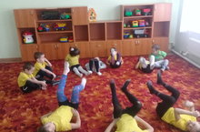Создавать условия, побуждающие детей к двигательной активности. Учить сохранять равновесия. Выполнять движения совместно с другими детьми.