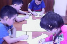 Комлыкта балалар тырышып - тырышып өйләр төзиләр.