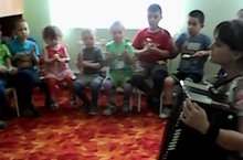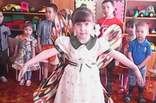 Безнең бакчада практика үтүче Алия апа белән төрле узыка коралларында уйнадык.
