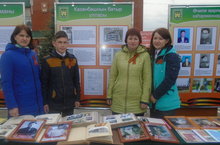 Сегодня в Арске прошел Парад победы. Учителя: Фазлиева Р.Р., Саттарова Г.Ф., Гафурова Э.Р. и учащийся 8 класса Альмиев Ильхам представили экспозицию, посвященную участникам Великой отечественной войны.