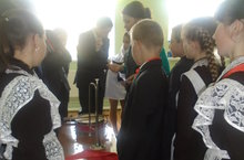 Сегодня учащиеся 4 класса стали Наследниками Татарстана. В торжественной обстановке им повязали галстуки.