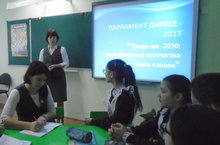 В целях формирования политико-правовой культуры и активной гражданской позиции обучающихся учителем истории Фазлиевой Р.Р. проведен парламентский урок "Татарстан-2030: мой вклад в будущее Республики" среди 7-8 классов.