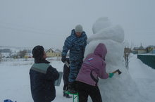 Сегодня родители вместе со своими детьми делали снежные фигуры возле школы.