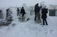 Бүген мәктәп каршына ата-аналар белән берлектә кардан сыннар ясалды.